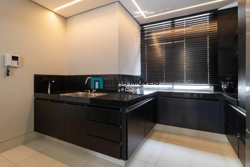 • Cozinha funcional equipada com armários planejados, bancadas em granito, fogão cooktop e coifa de alto desempenho;