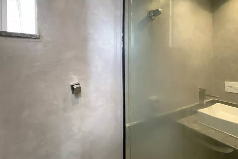2 quartos espaçosos, todos com piso em vinílico de madeira e armários, sendo duas suítes com bancada em granito preto, pia em cuba de apoio e box em blindex