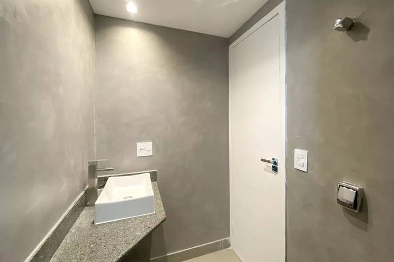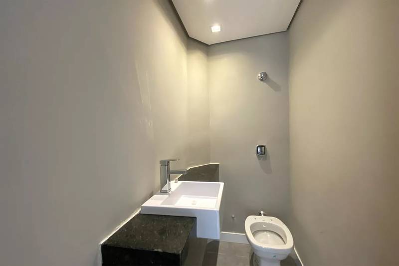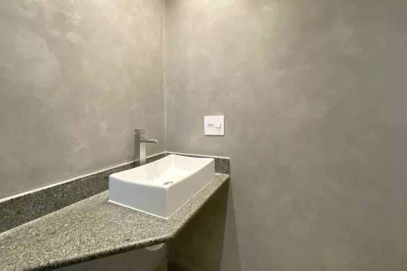Lavabo com bancada em granito e pia em cuba de apoio