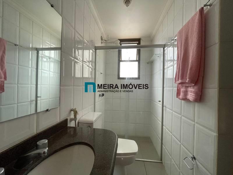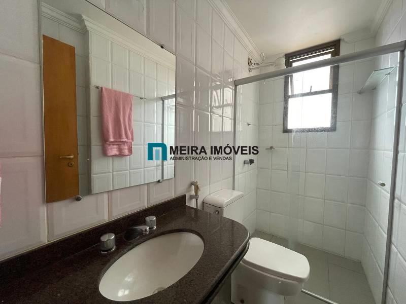 Banheiros (social e suíte) com piso em cerâmica, bancadas em granito e box blindex.