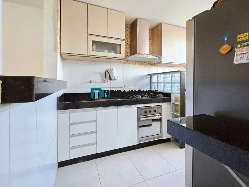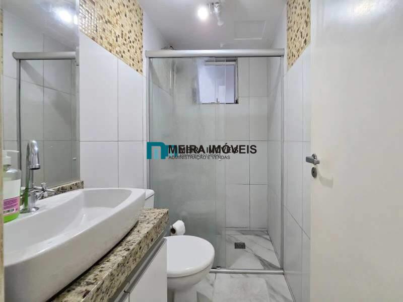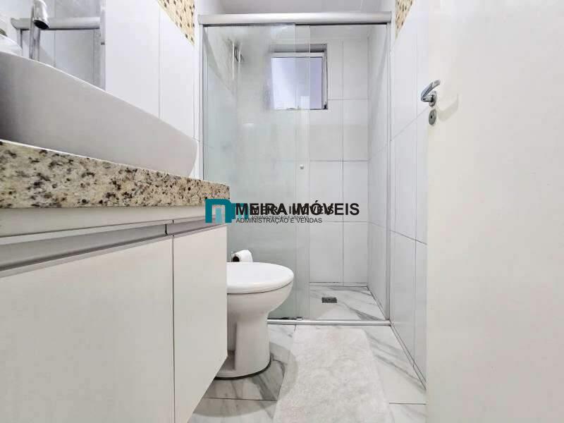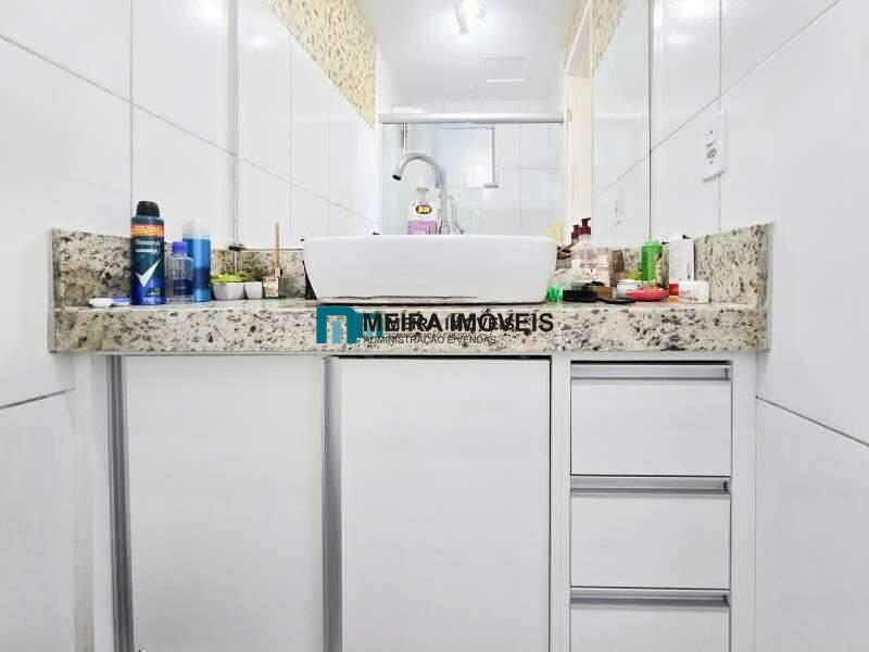 03 quartos com armários planejados e piso em porcelanato, sendo 01 suíte com bancada em granito, armário planejado e box em vidro