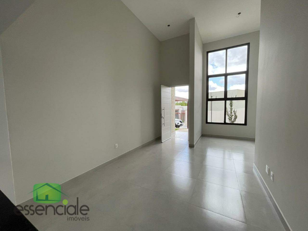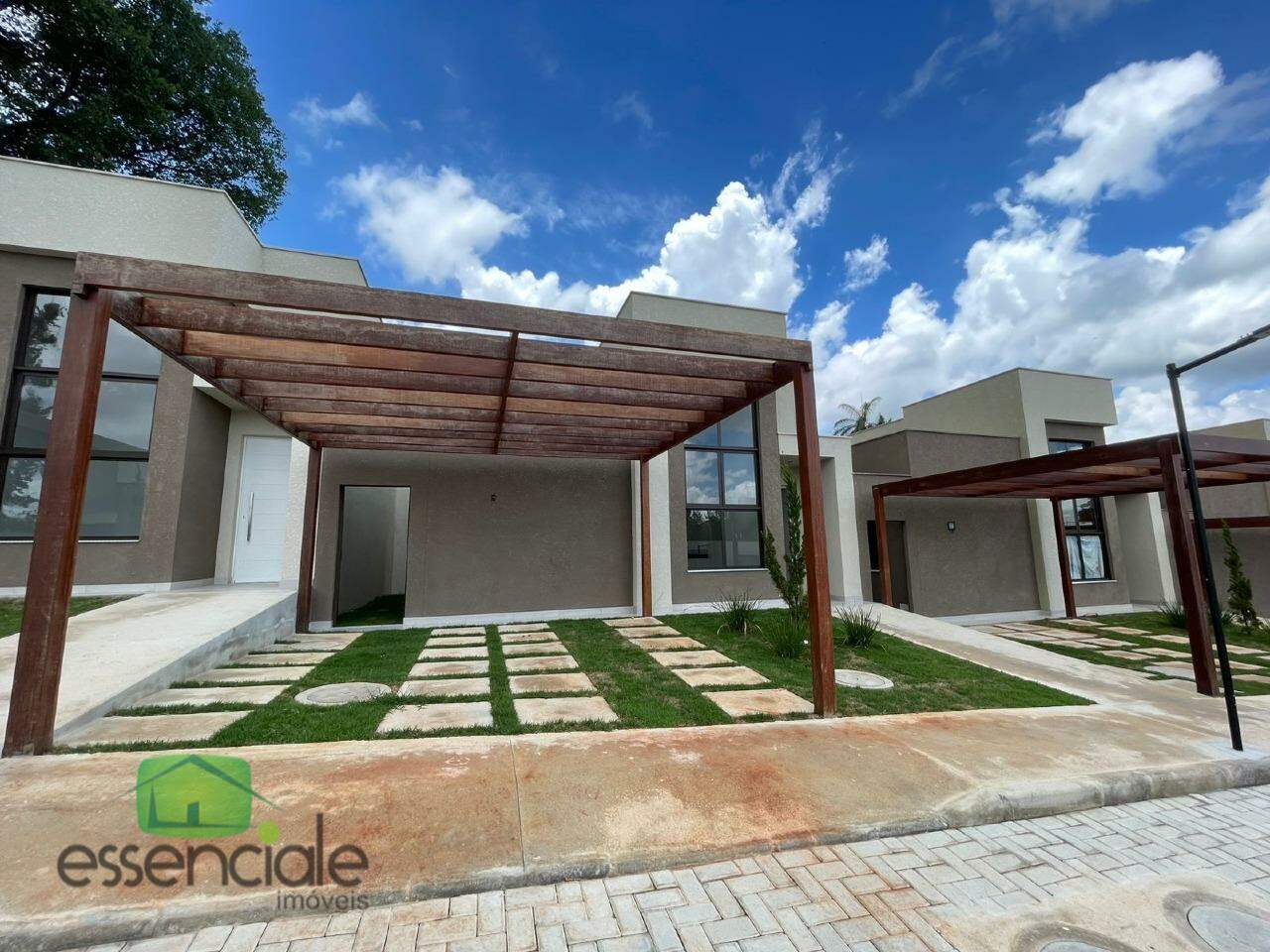 Existem duas opções de plantas: Casa modelo 01 com área construída de 87,84 m², área privativa lateral de 5,50 m² e fundos de 7,50 m²; Casa modelo 02 com área construída de 84,60 m², área privativa lateral de 9,32 m² e fundos de 49,16 m². O término da obra está previsto para dezembro de 2025, oferecendo oportunidade de morar em um imóvel novo com acabamento moderno e infraestrutura completa.
