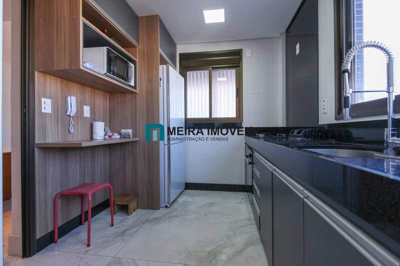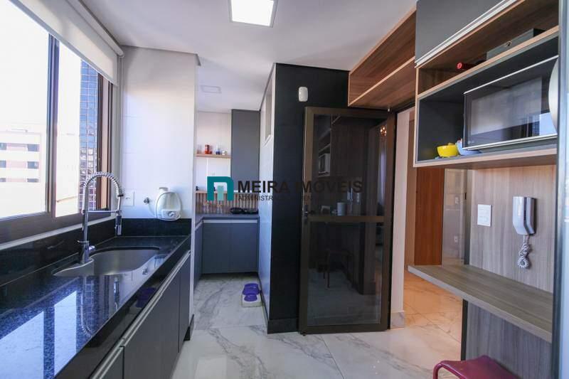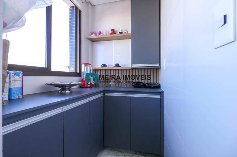 • Cozinha planejada equipada com bancadas em granito e armários planejados, além de piso em porcelanato.