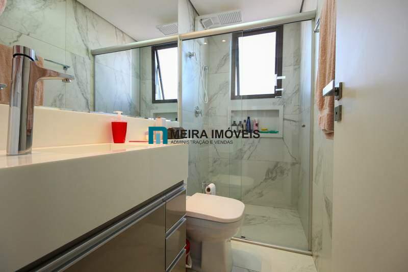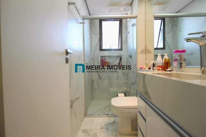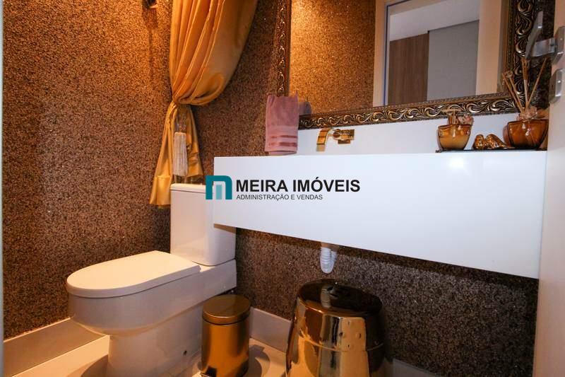 • 3 quartos com armários planejados e piso laminado de madeira, sendo 2 suítes com bancada em porcelanato, armários planejados, espelho e box em blindex;